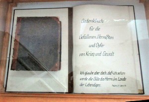 In der Kirche St. Peter ist in einer Vitrine ein "Gedenkbuch" für die Opfer von Krieg und Gewalt ausgestellt.