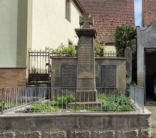 Denkmalstele mit krönendem Tatzenkreuz für die Gefallenen, Vermissten und Teilnehmer des 1. Weltkriegs.