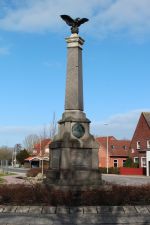 In der Mitte des Verkehrskreisels steht eine Siegessäule, die sich nach oben verjüngt. Dreistufiger Sockelfuß, darauf quadratisch angeordnetes Postament, eingelassen vier Tafeln mit den Namen/Orten, dann eine Ebene mit dem Bildnis Kaiser Wilhelm I in Form eines Medaillons aus Bronze,