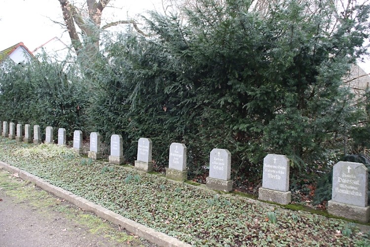 Im Friedhof eine Reihe Kriegsgräber, sowie Daten von privaten Gedenksteinen.