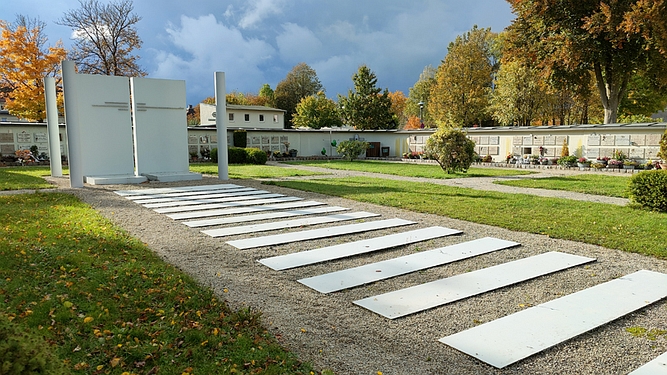 Auf dem Friedhof befindet sich ein modernes Ehrenmal für die Opfer des 2. Weltkriegs.