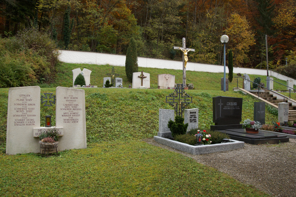Denkmal auf dem Kirchenfriedhof Hl. Kreuz in Schambach in Form zweier Grabsteine.