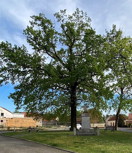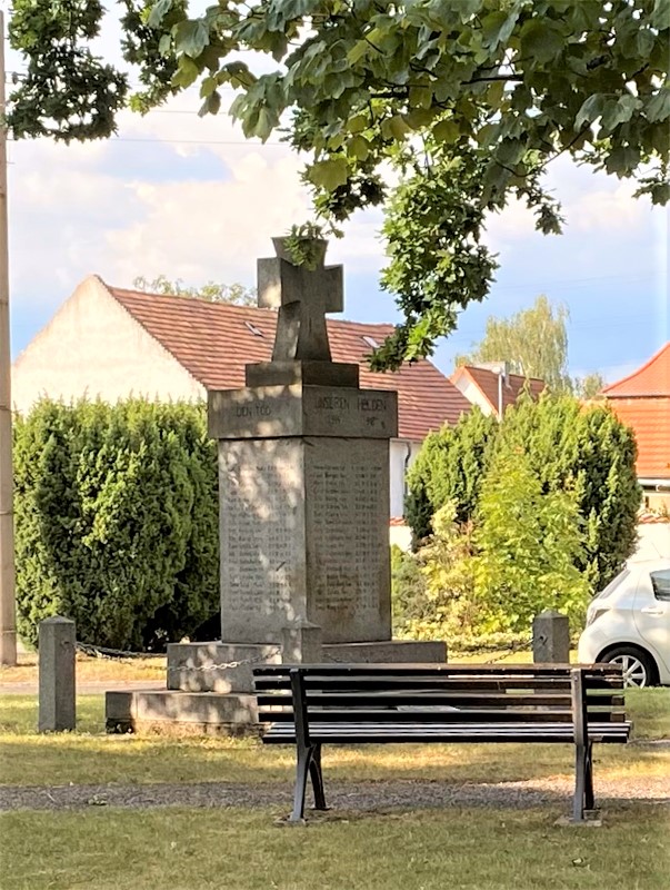 In der Dorfaue des ehemaligen Dorfes Zschornegosda: Denkmal nebst einer 1888 gepflanzten „Kaiser-Wilhelm-Eiche„, ein Granitquader mit EK als Krone.