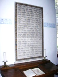 auf dem Eichenpult davor das Gedenkbuch mit den 124 Namen der Opfer des Zweiten Weltkrieges.