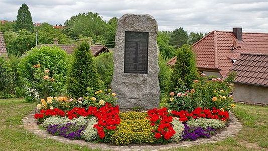 Steinfindling mit eingesetzter Gedenktafel.