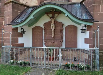 An der Außensteite der Kirche befindet sich das Kriegerdenkmal.