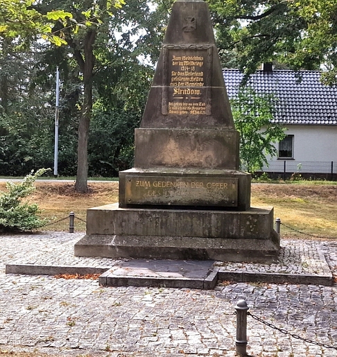 Das Denkmal befindet sich in der Dorfmitte von Stradow.