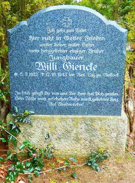 Kriegsgrab, Ich gehe zum Vater. Hier ruht in Gottes Frieden unser lieber, guter Sohn mein herzgeliebter einziger Bruder Jungbauer (Name und Daten) Zu früh gingst Du von uns. Der Herr hat Dich gerufen. Sein Wille muß geschehen. Ruhe sanft, geliebtes Herz. Auf Wiedersehn! |
