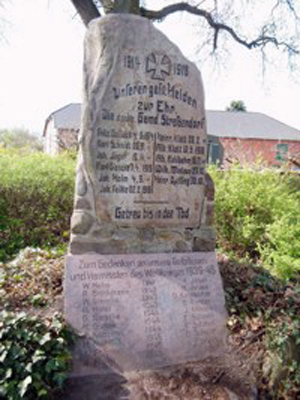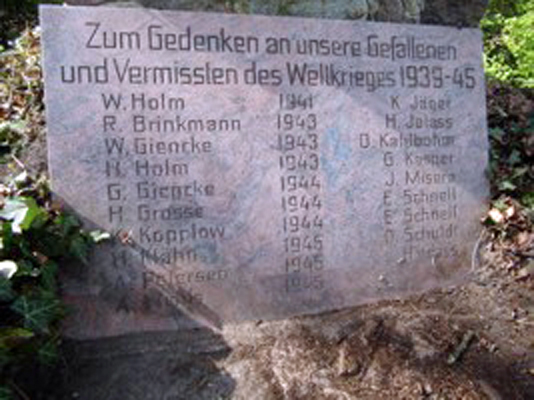 Denkmal 1. und 2. Weltkrieg: Feldsteinsockel mit aufgesetztem Findling für die Gefallenen des 1. Weltkriegs,
