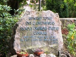 Am Rande des Kirchhofs ein Gedenkstein für die Opfer des Zweiten Weltkrieges (ohne Namen).