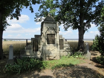 Das Denkmal steht auf dem Friedhof der Gemeinde. Aus Sandstein ist eine kleine halbrunde Mauer errichtet worden, in der Mitte der Mauer wurde ein höheres Segment gemauert.