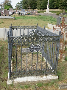 Das Grab auf dem Friedhof von Thorigné-sur-Dué ist umfriedet mit einem Metallzaun. Daran angebracht ist ein kleines Schild mit der Aufschrift: Tombes Militaires Loi de 4 avril 1875*