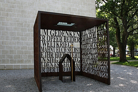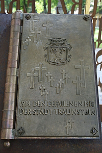 je einem Gedenkbuch aus Metall für den 1. und 2. Weltkrieg