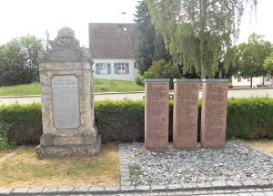 daneben drei Steintafeln mit den Namen der Gefallen und Vermissten des Zweiten Weltkriegs.