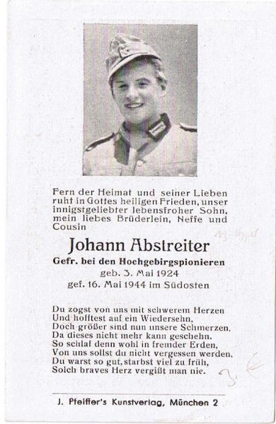 Gefreiter | ABSTREITER | Johann | 03.05.1924 München |