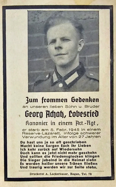 Kanonier | ACHATZ | Georg | 05.02.1945 Reserve‑Lazarett | gestorben |