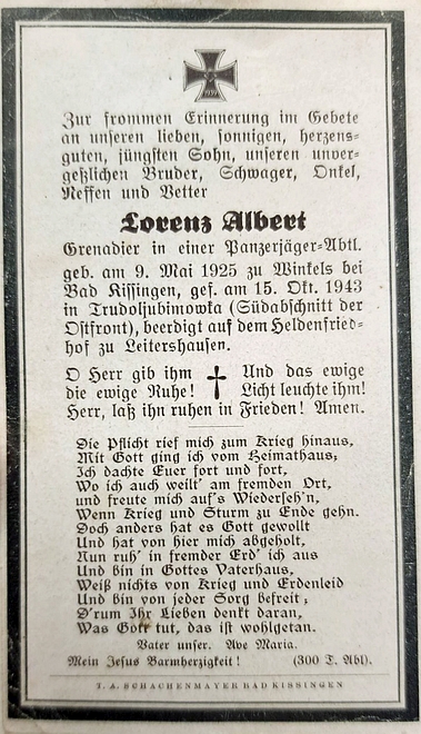 Grenadier | ALBERT | Lorenz | 09.05.1925 Winkels bei Bad Kissingen |