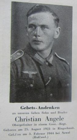 Obergefreiter | ANGELE | Christian | 25.08.1923 Ringschnait | 03.02.1944 b. Newel, Russland |