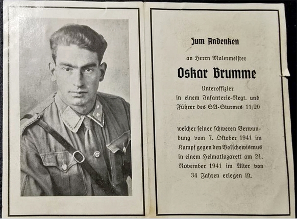 Unteroffizier | BRUMME | Oskar | 03.09.1907 Pfronten‑Ried | 21.11.1941 Res.Laz.II Chemnitz | 9. Komp. Inf. Regt. 499 | Führer des SA‑Sturms 11/20 |