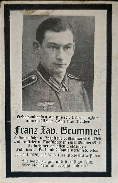 Unteroffizier | BRUMMER | Franz Xaver | 05.04.1920 Neumarkt, St. Veit | 27.08.1944 Zbielutka, Zbelutka, Polen | Zugführer, Pionier Abt. |