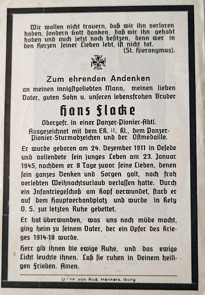 Obergefr. | FLACKE | Hans | 24.12.1911 Oesede, Georgsmarienhütte |