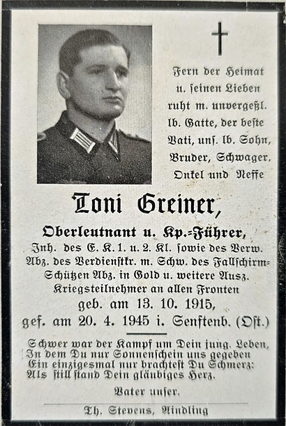 Oberleutnant | GREINER | Toni | 13.10.1915 | 20.04.1945 Senftenberg | Kompanieführer |