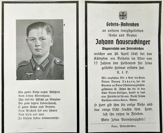 HAUSRUCKINGER | Johann | 04.02.1926 Peterskirchen | 26.04.1945 um Kelheim |
