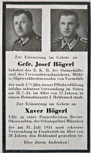 HÖGERL | Josef | Vormühle | 28.07.1944 im Osten |