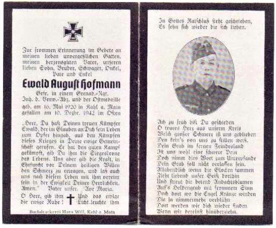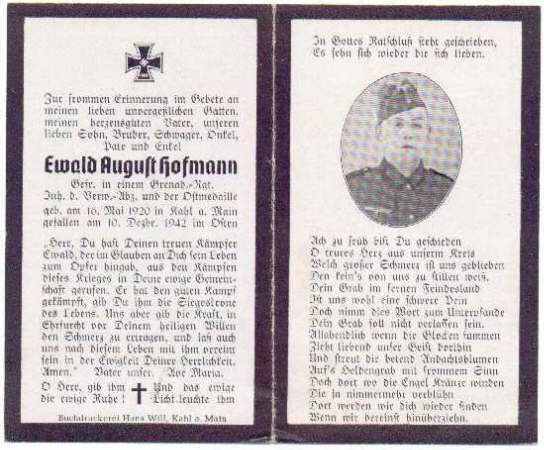 Gefreiter | HOFMANN | Ewald August | 10.05.1920 Kahl am Main |