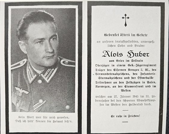 Geb.-Jäger-Regt. | im 31. Lebensjahr, aus Gries im Sellrain |