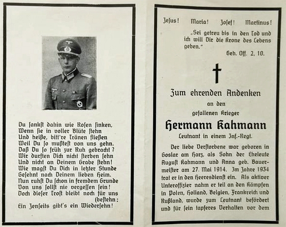 Leutnant | KAHMANN | Hermann | 27.05.1914 Goslar | 25.10.1941 Gorki | Schützen Regt. 112, 6.Komp. |