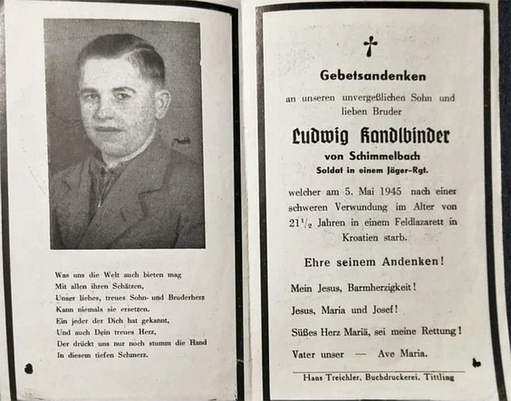 Soldat | KANDLBINDER | Ludwig | 05.05.1945 Feldlazarett in Kroatien | Jäger-Rgt. |