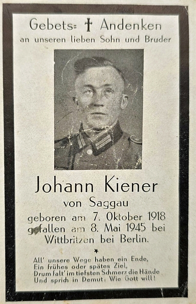 Gefreiter | KIENER | Johann | 07.10.1918 Saggau | 08.05.1945 Wittbrietzen bei Berlin | Kriegsgräberstätte in Wittbrietzen-Dorfstraße |