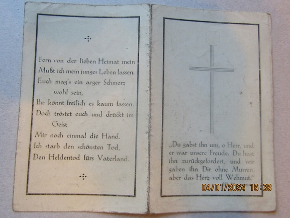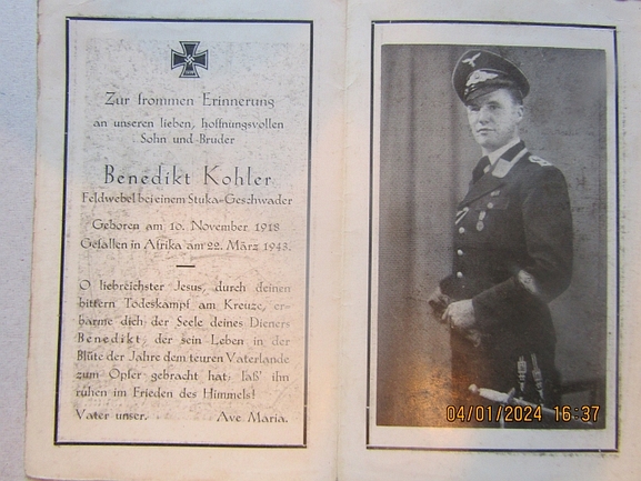 Feldwebel | KOHLER | Benedikt | 10.11.1918 | 22.03.1943 Afrika |