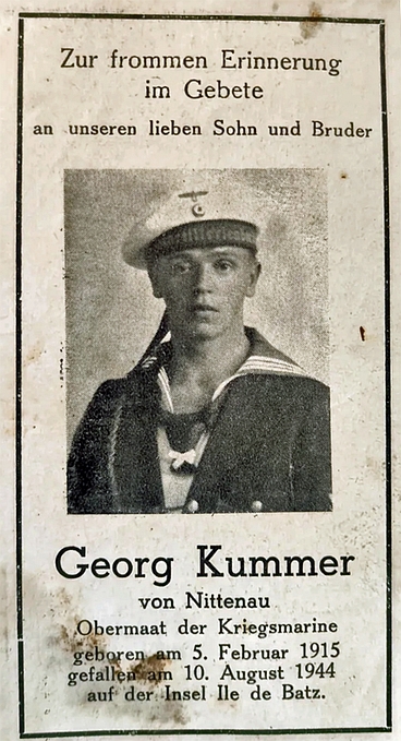 Obermaat | KUMMER | Georg | 05.02.1915 Bruck | 10.08.1944 Ile de Bas | Marine | Kriegsgräberstätte in Ploudaniel-Lesneven: Block 8 Reihe 8 Grab 251 |