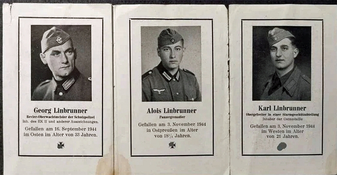 Panzergrenadier | LINBRUNNER | Alois | 24.02.1926 Hofkirchen | 03.11.1944 Ostpreußen, Schäferberg, nördlich Goldap | 3. Pz. Gren. Btl. | Kriegsgräberstätte in Cernjachovsk/Tschernjachowsk: Block 5 Reihe 2 Grab 135 |