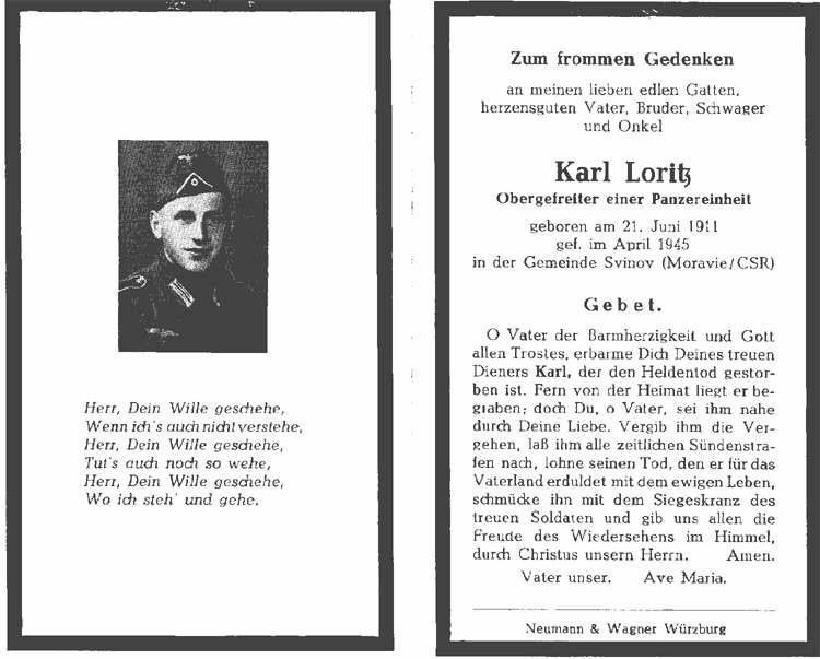 Verantwortlich für diesen Beitrag: Karl Loritz (Sohn des Gefallenen)
