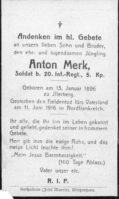 Soldat | MERK | Anton | 13.01.1896 Illerberg |