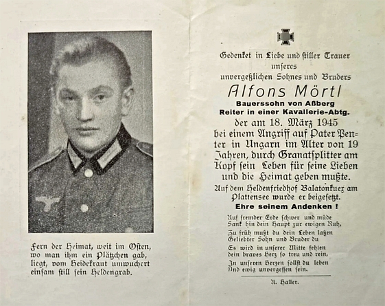 Reiter | MÖRTL | Alfons | 18.03.1945 Pater Penter, Ungarn | Kavallerie‑Abt. | 19 Jahre |