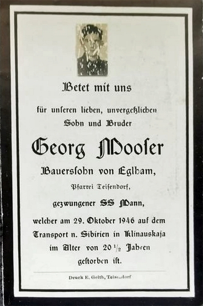 SS-Mann | MOOSER | Georg | 29.10.1946 auf dem Transport nach Sibirien in Klinauskaja | zwangesrekrutiert, 20 ½ Jahre |