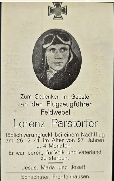 Feldwebel Flugzeugführer | PARSTORFER | Lorenz | 17.10.1913 Aham/Wils bei Landshut |