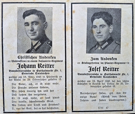 REITTER | Josef | Taiskirchen | 18.04.1945 Kautsch bei Dessau | im 33. Lebensjahr |