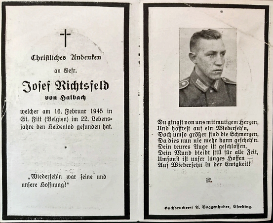 Gefreiter Grenadier | RICHTSFELD | Josef | 12.01.1923 Haibach | 16.02.1945 St. Fitt, Belgien, St. Vith |
