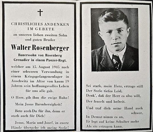 Grenadier | ROSENBERGER | Walter | 18.12.1926 Rosenberg | 15.08.1945 polnisches Kriegsgefangenenlager Lazarett 2020, Auschwitz | Panzer‑Regt. |
