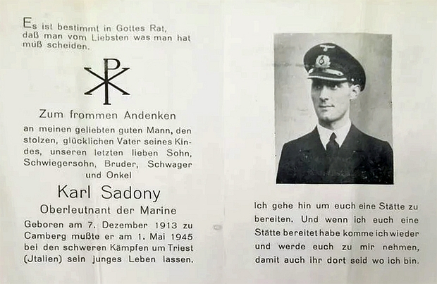 Oberleutnant | SADONY | Karl | 07.12.1913 Camberg | 01.05.1945 bei Triest | Marine |