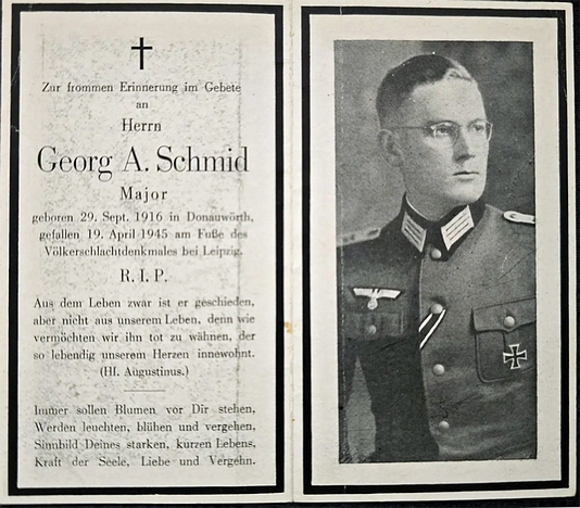 Major | SCHMID | Georg A. | 29.09.1916 Donauwörth | 19.04.1945 am Fuße des Völkerschlachtdenkmals |