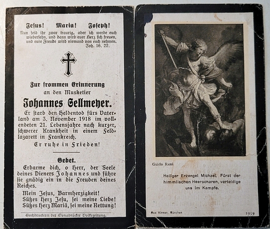 Musketier | SELLMEYER | Johannes Mathias | 30.08.1897 Oesede, LK Osnabrück | 03.11.1918 Feldlazarett, Frankreich | an Krankheit gestorben, Kriegsgräberstätte in Noyers‑Pont‑Maugis: Block A Grab 1145 |