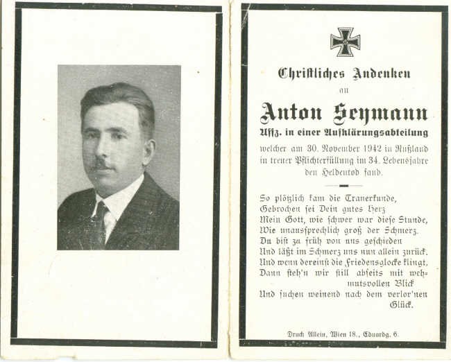 Unteroffizier | SEYMANN | Anton | 30.11.1943 Rußland |