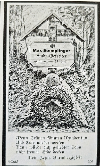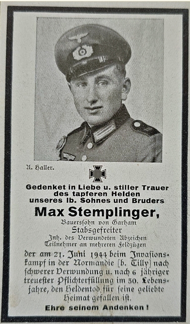 Stabsgefreiter | STEMPLINGER | Max | 16.04.1915 | 21.06.1944 Invasionsfront Normandie bei Tilly | Kriegsgräberstätte in La Cambe: Block 36 Grab 254 |