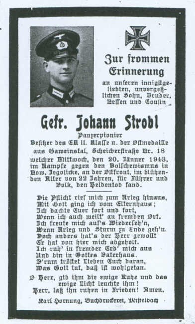 Gefreiter | STROBL | Johann | Gaweinstal | 20.01.1943 | Panzerpionier | Inhaber des EK II und der Ostmedaille |